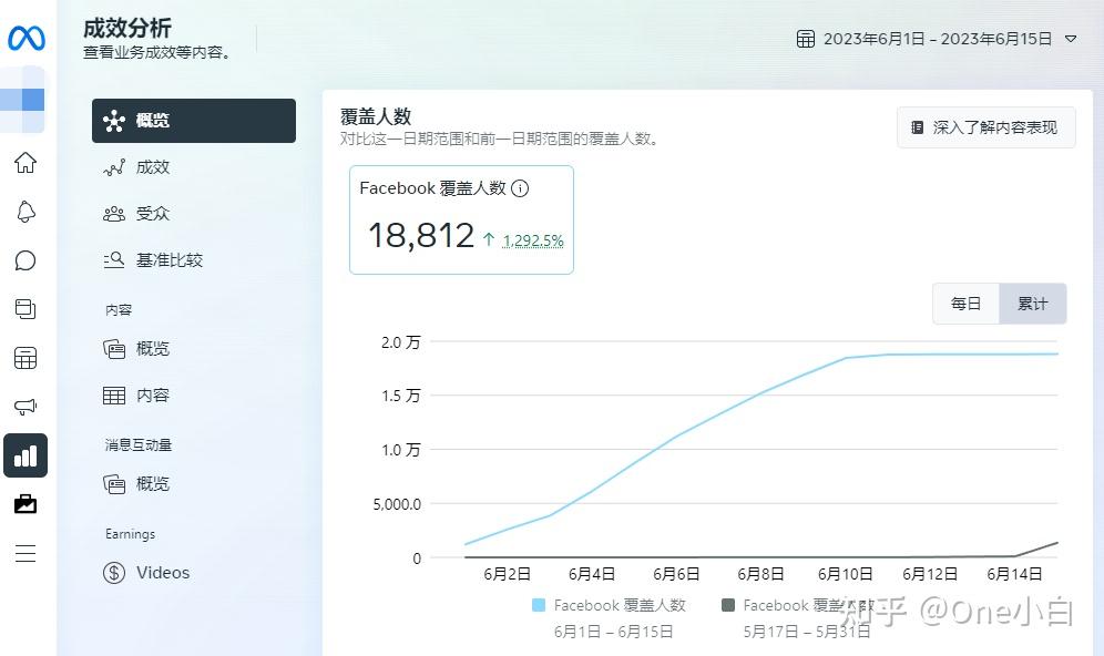- Facebook 公共主页和 Instagram 业务主页的表现,例如覆盖人数的变化趋势,